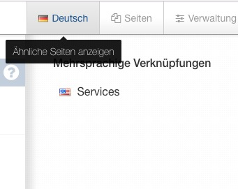Wurde eine Seite in der englischen Sitemap hinzugefügt, kann man die Sprache bzw. die Sprachenansicht über den Sprachenbutton wechseln.