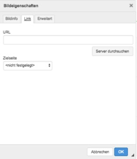 Unter „Link“ können Sie einen URL angeben und eine Zielseite für die Bildeigenschaften festlegen.