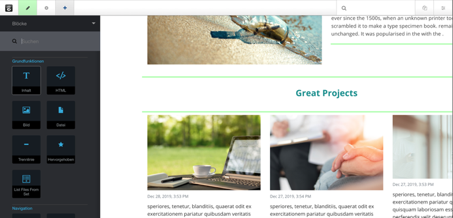 Wichtig: Zum besseren Verständnis schauen Sie sich hierzu auch das Kapitel 1.4 Seitenbereiche an. Darin finden Sie einen Überblick über den Seitenaufbau und genaue Hinweise, welche Blöcke welchen Seitenbereichen zugeordnet werden dürfen.