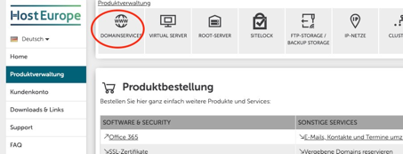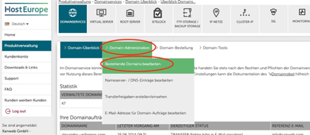 Jetzt auf „Domain-Administration“ und anschließend auf „Bestehende Domains bearbeiten“ gehen