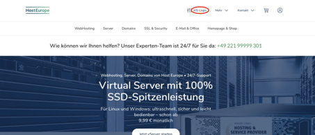 Auf „hosteurope.de“ gehen und dort oben auf „KIS Login“ klicken