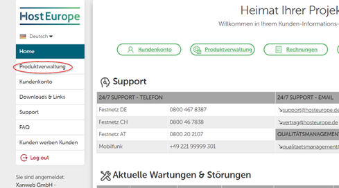 Nun auf „Produktverwaltung“ klicken.