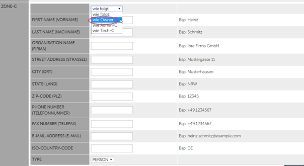 Hier bei „First Name (Vorname)“: „wie Owner“ auswählen