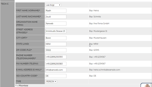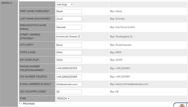 Bei „E-Mail-Adresse“: hier info@xanweb.com eintragen