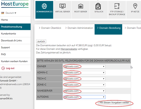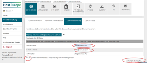 Hosteurope: Neue Domain registrieren