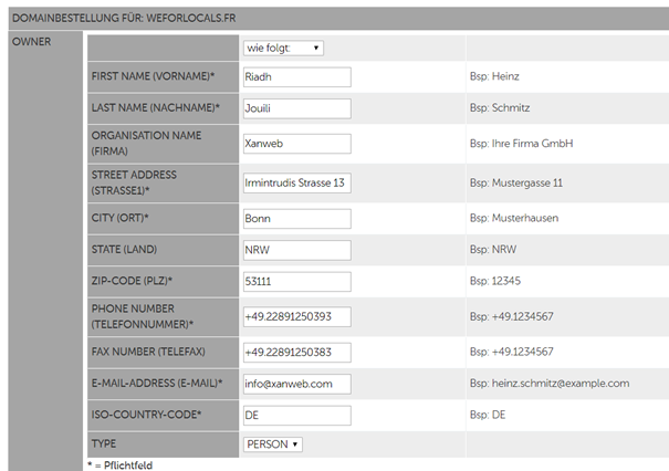 Bei „Domainname“: hier den ausgewählten Domainnamen eingebe, z.B. „weforlocals.com“