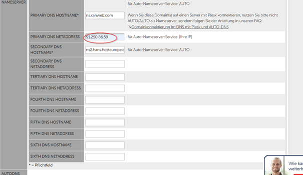 Hier bei „Primary DNS Netaddress“ die DNS von unserem Server (91.250.86.59) eingeben.