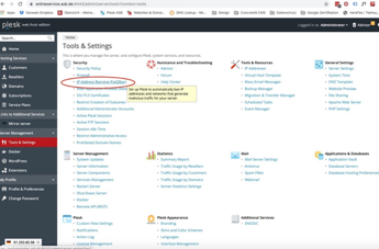 Programm „Plesk“ öffnen und auf „Tools & Settings“ gehen (siehe Bild):