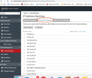 Auf dem Reiter „Trusted IP Addresses“ kann ich alle vertrauenswürdigen IP Adressen aufgelistet sehen (siehe folgendes Bild):