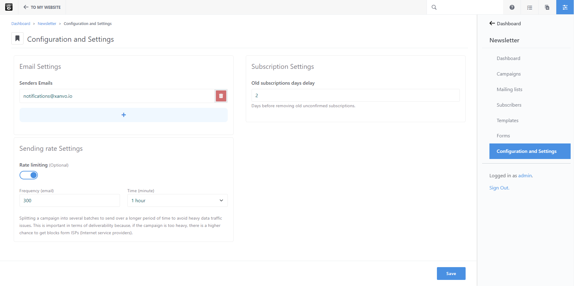 By enabling this option, you can set the maximum number of emails sent over a defined period of time.