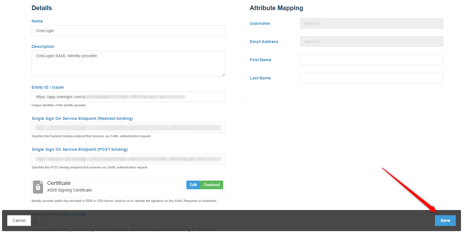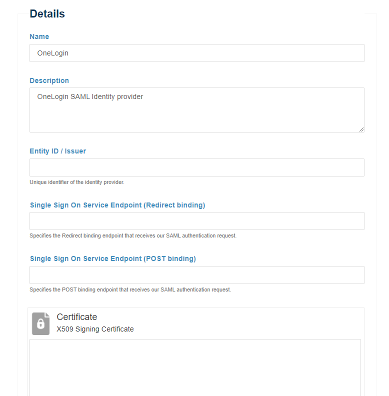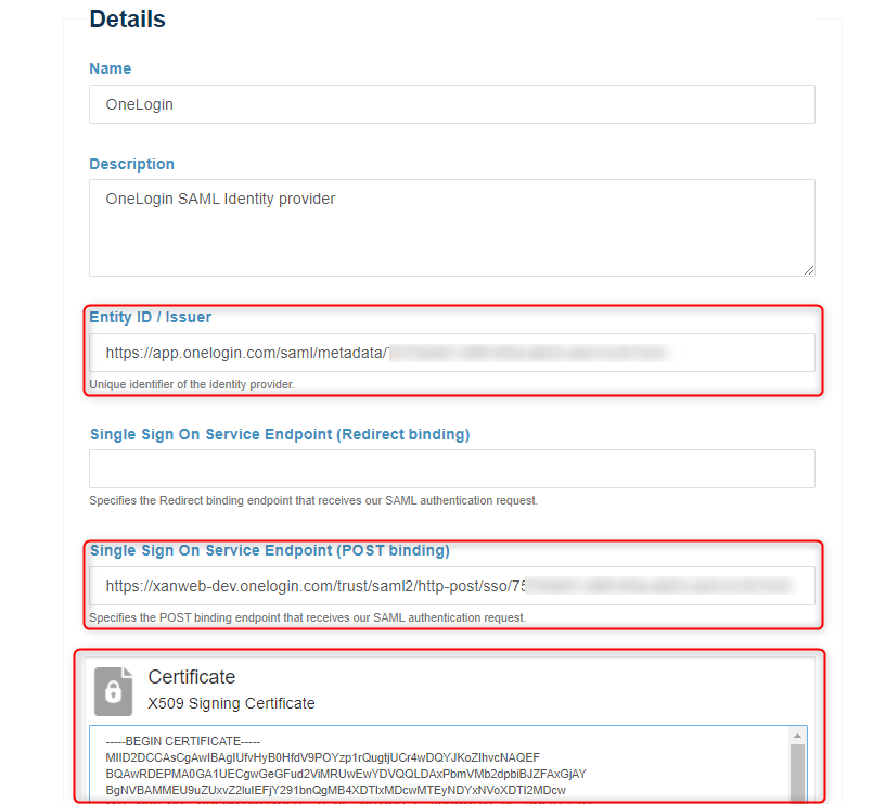 | Issuer / EntityID | OneLogin Issuer URL |