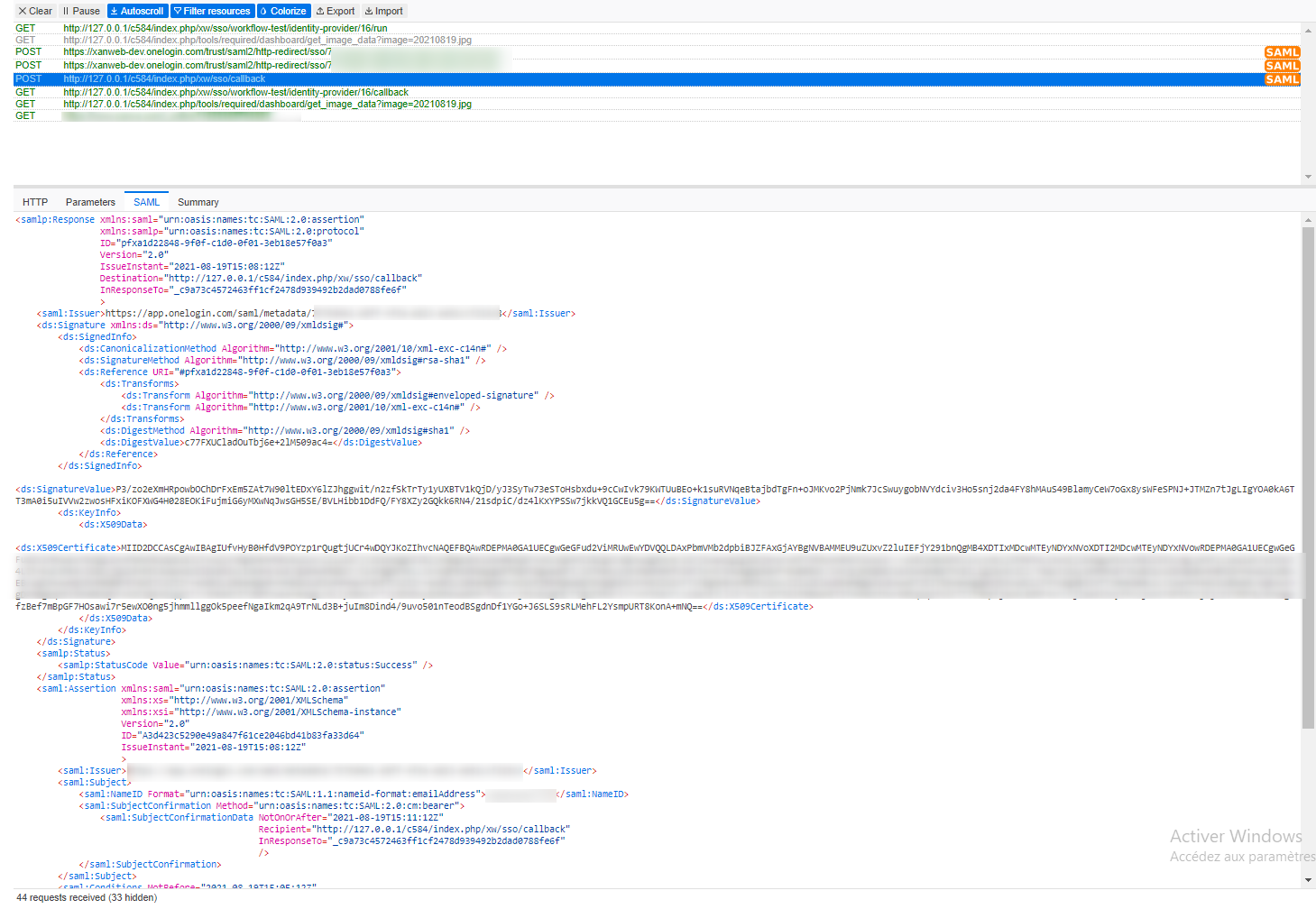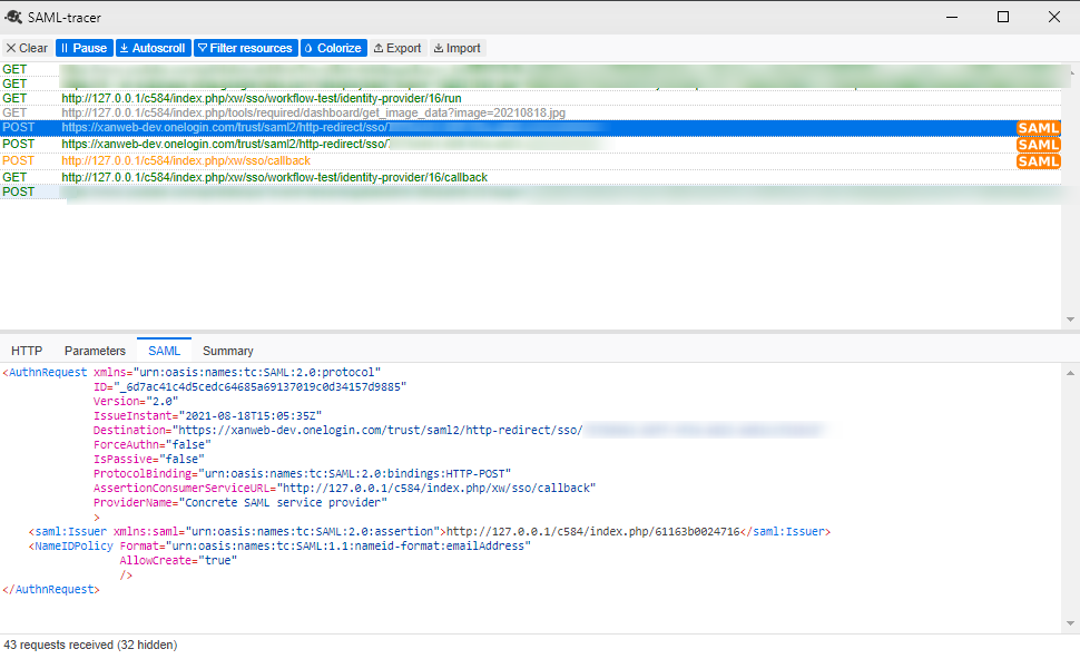 - plain SAML messages (See above about SAML tracer extension)